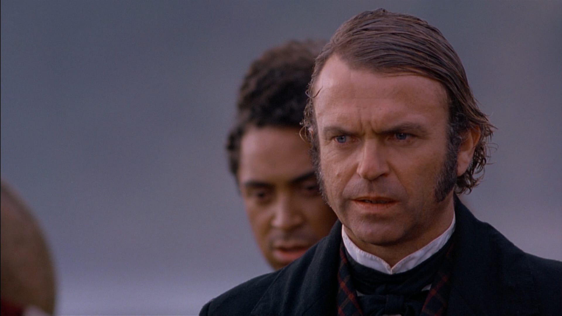 There are a couple of other strands here that I’d like to hear from you on, Keith. First, what do you make of Alisdair and of Sam Neill’s performance? I wouldn’t go all the way in describing him as sympathetic: Beyond the index finger thing, there’s also his clumsy attempt to force himself on Ada in the forest and his efforts to board her into his home. But he does seem genuine in wanting to bring Ada and Flora into a life of relative ease and privilege, and he’s steadfast enough in his efforts that he wins Flora over, which sets up the girl’s tragic mistake of delivering the “key” to Ada’s heart to him rather than George. He may be a monster, but there’s dimension to him, no? Campion seems to understand him as a man of his times at least.
