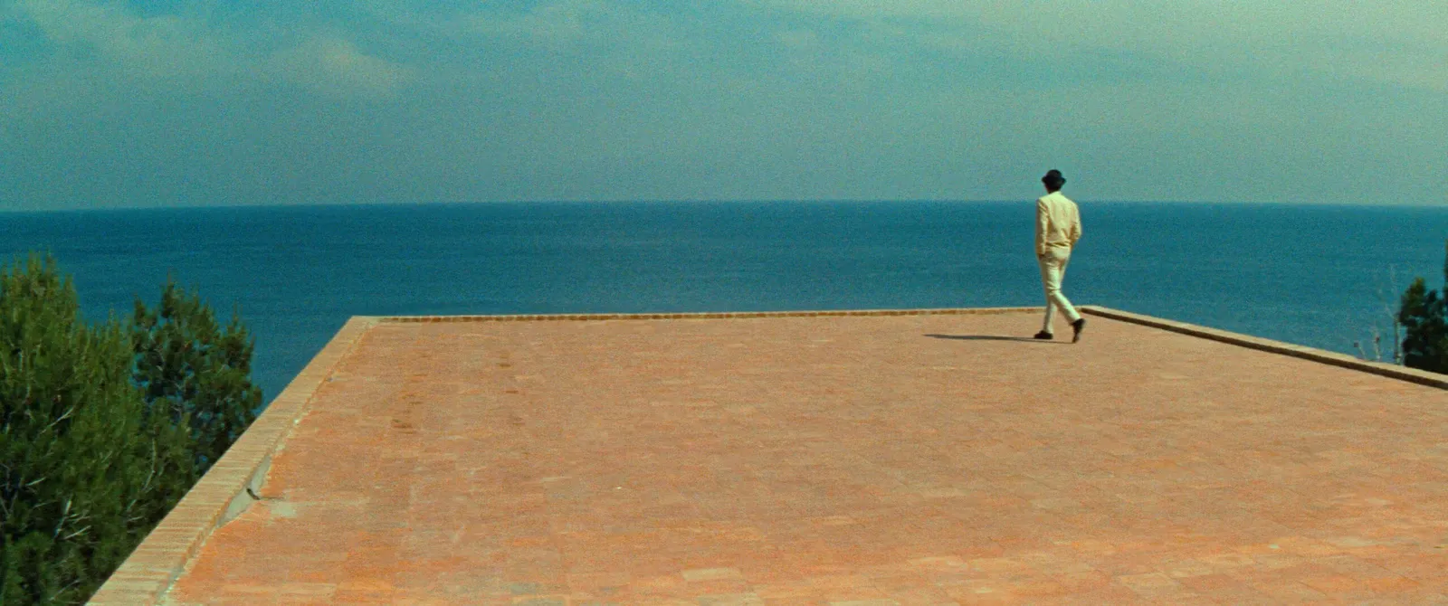 Keith: Is there a term to describe when the compliance is malicious but the results are extraordinary anyway? Whatever Godard’s true feelings about CinemaScope, Contempt doubles as a kind of master class in how to employ it. And not just in the expected ways, either. CinemaScope is perfect for vistas and battle scenes—it was practically designed for such images—but Godard and Coutard prove it can be just as useful in depicting how the space between two people in the apartment they share can feel cavernous and how crossing it can feel like an act that requires extraordinary effort. A few shots here make playful/sadistic use of the widescreen frame. The slow pans back and forth sometimes feel like they’re intentionally there to induce seasickness, but mostly it’s used to remarkable effect. I keep thinking about the overhead shot in which Bardot disappears down a flight of steps descending into sea, throws her robe into the frame, then next appears below in the ocean.