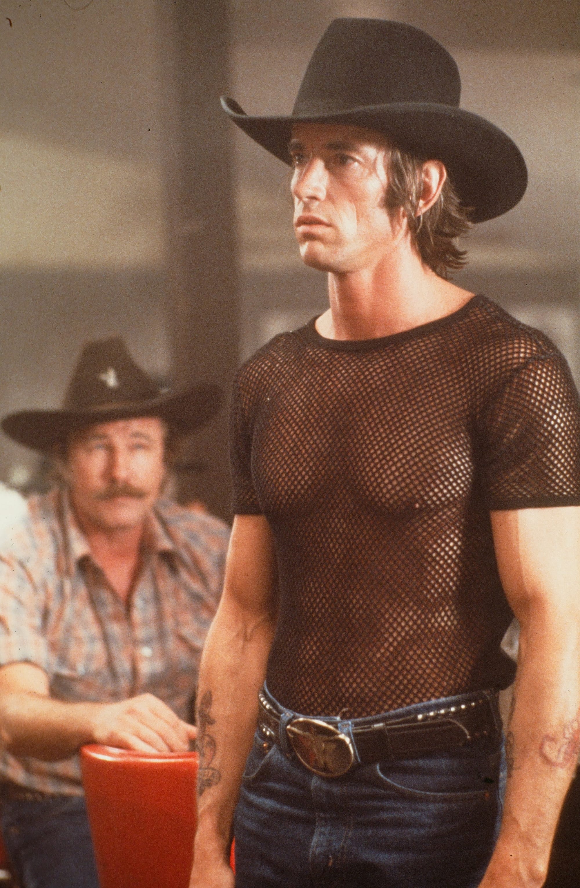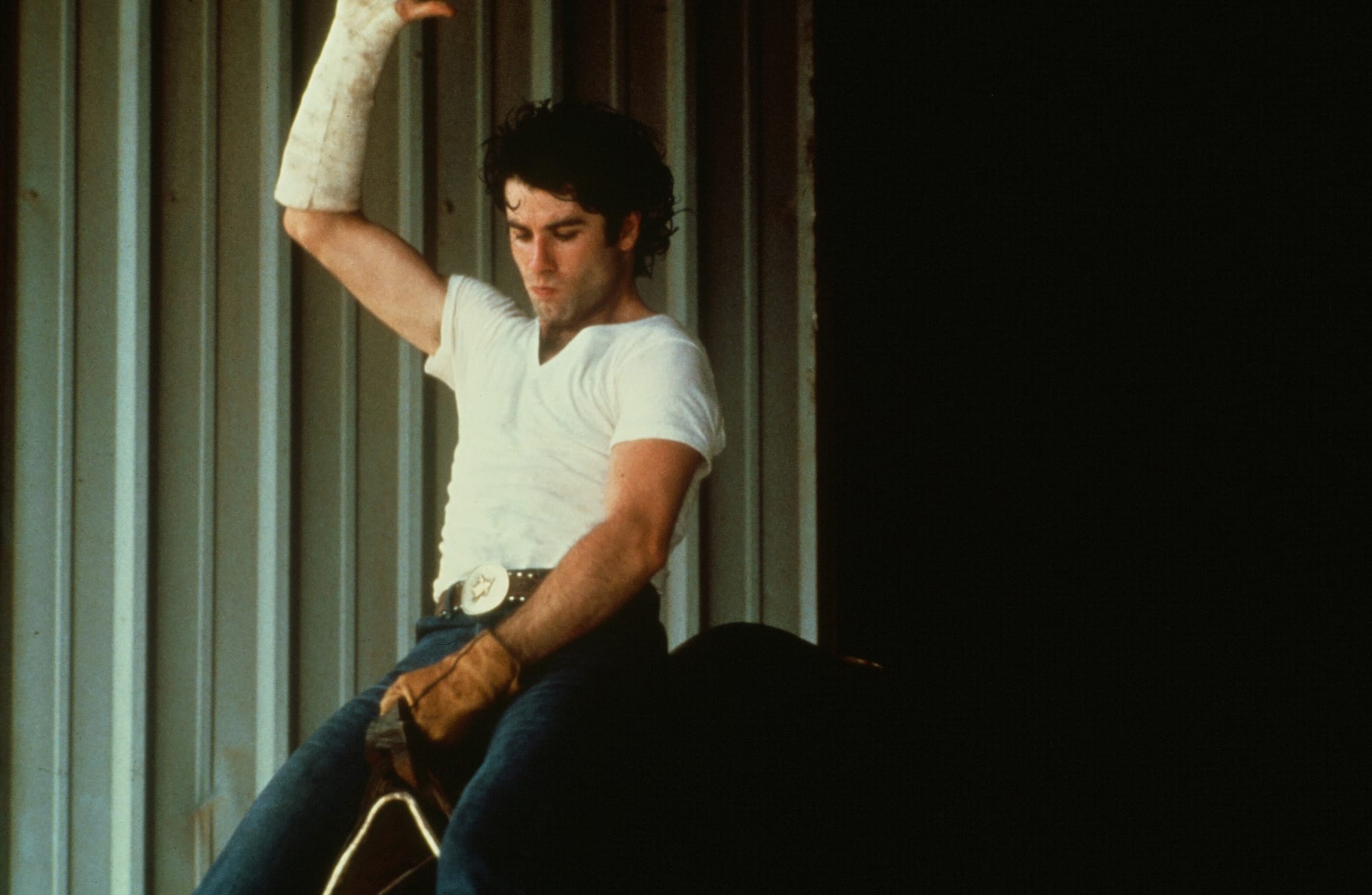 That’s at least partly because Bud looks like John Travolta, whose early career is filled with characters who behave shittily but are just too beautiful for other characters (and audience members) not to forgive. (See also Tony Manero, Danny Zuko, and Vinnie Barbarino.) And it’s at least partly because after Bud and Sissy split up when Sissy’s insistence on riding the mechanical bull widens preexisting fissures in their marriage. Sissy falls in with the even more abusive Wes Hightower (Scott Glenn), an ex-con hired to work the mechanical bull, a man so confident he shows up wearing a see-through black mesh shirt while surrounded by Western finery. He’s unfaithful and physically abusive but encouraging of her mechanical bull-riding enthusiasm, memorably demonstrated in a sensual, acrobatic routine Winger performs without a double. (This would prove to be her breakthrough role.) It’s Bud who strays first, drawn away by Pam (Madolyn Smith), an oil executive’s daughter with a taste for cowboys. Her father goes to an analyst three times a week but Pam, as she tells Bud, likes “men with simple values. I like ‘em independent, self-reliant, brave, strong, direct, and open.”