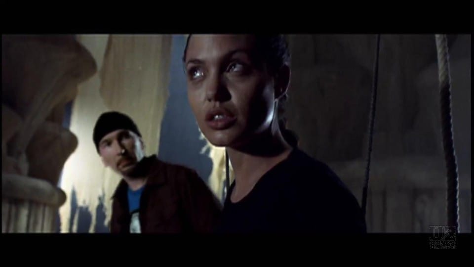 A video that looks like it might have cost as much as the movie that spawned it opens with Bono receiving a phone call that The Edge has been kidnapped and will not be returned unless Bono surrenders “the key.” This doesn’t really square with the rest of the video, which pretty convincingly inserts The Edge into scenes from Tomb Raider that make him look like a sidekick to Angelina Jolie’s Lara Croft. Ultimately, however, it’s not Croft but Bono’s ability to freeze time, levitate objects, and harness the power of the wind that saves the day. Is there anything he can’t do?