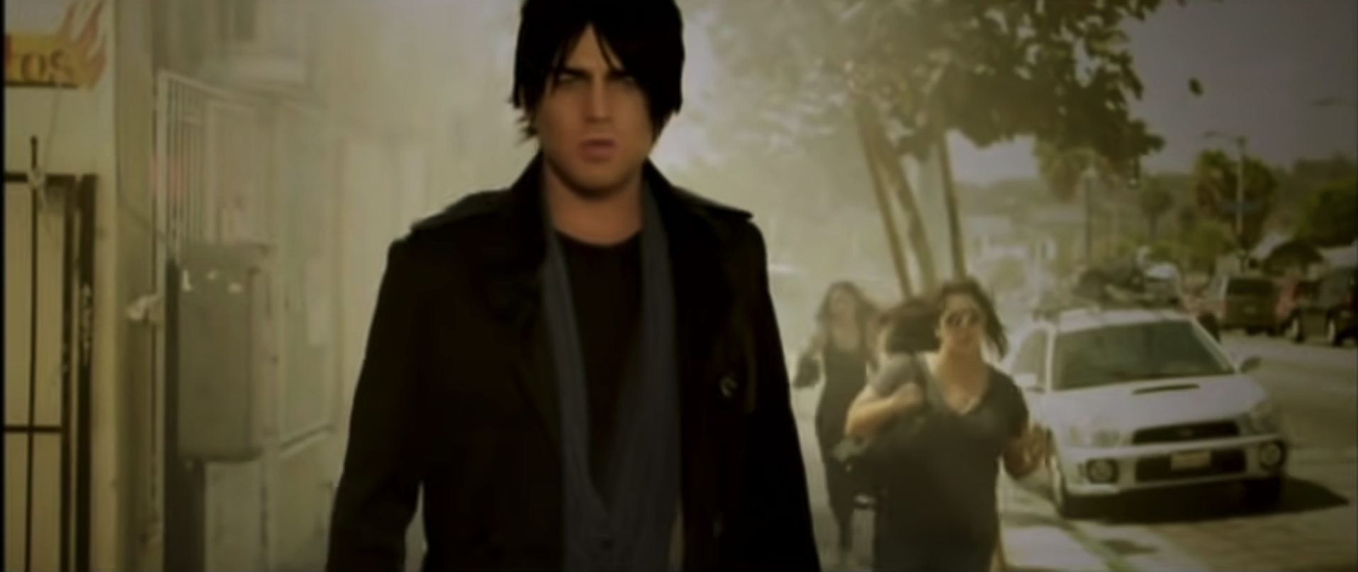 While buildings burn and panicked crowds flee the apocalyptic events of this deeply morally suspect Roland Emmerich stinker, Adam Lambert stares earnestly into the camera, assuring those watching that “he ain’t givin’ up on us.” It’s awful, awful stuff visually, conceptually, and musically.