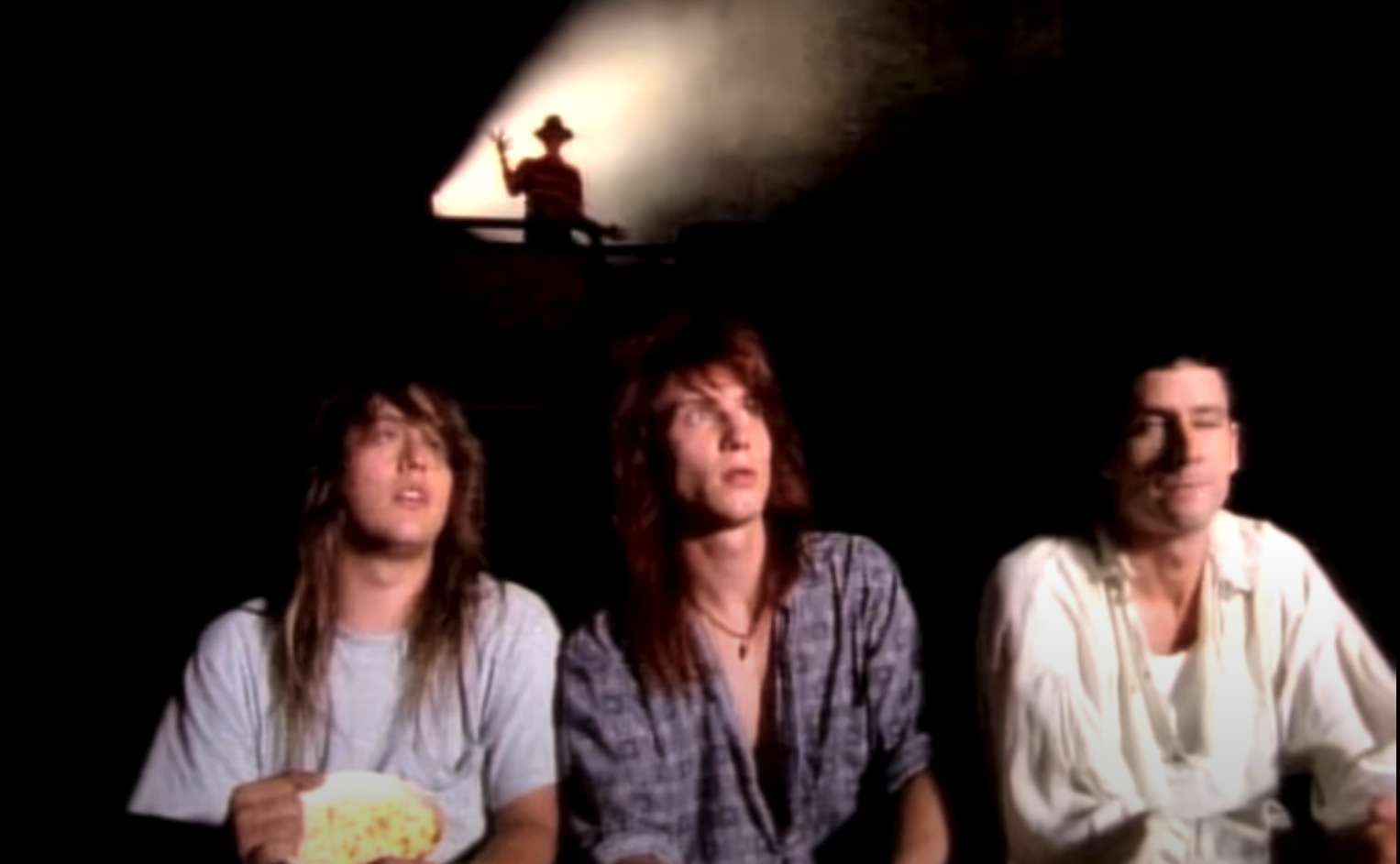 The Goo Goo Dolls fall asleep watching a Nightmare on Elm Street movie and awaken in an old theater that’s, frankly, not particularly creepy. A few shots (that notably do not show Elm Street star Robert Englund’s face) suggest Freddy might be stalking them. Everyone looks kind of bored then, eventually, they wake up. It’s a pale imitation of a winning concept that a previous Elm Street soundtrack song had already executed much better. (See below.)